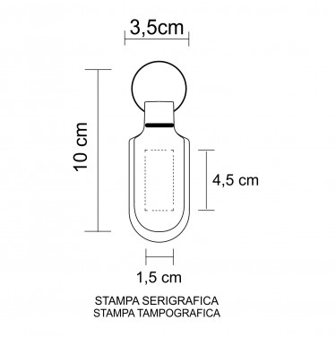 Aria di stampa max cm 1.5 x 4.5 con stampa in serigrafia monocolore. Grafica fornita dal cliente o richiedere bozza fornendo il logo in alta qualità o in vettoriale, inoltre indicare colore preferito e colore di stampa.