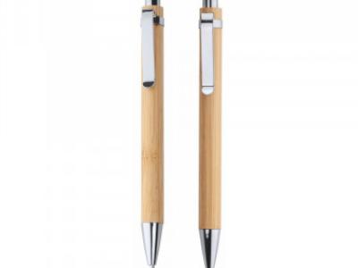Set bamboo . Penna refil nero + matita. Clip in metallo. Confezione in astuccio cartone effetto legno.