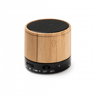Speaker bluetooth in bamboo, funzione radio FM, vivavoce, slot per schede Micro SD, 3W di potenza, batteria ricaricabile, cavo incluso.