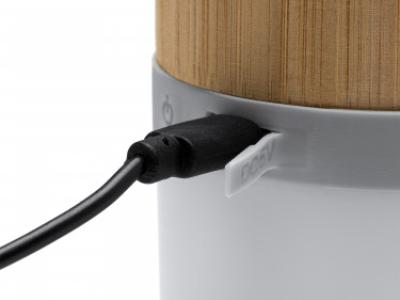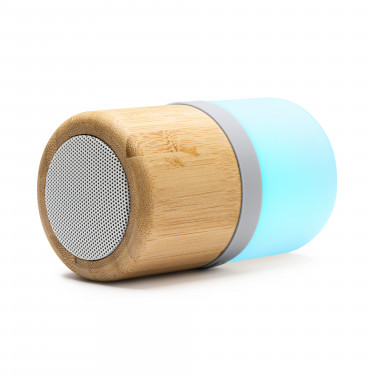 Speaker wireless in bamboo, luce LED multicolore con 4 modalità di illuminazione, Uscita 3W, batteria ricaricabile e cavo inclusi.