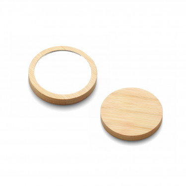 Specchietto in bamboo. Dimensioni: cm ø 7. Confezione in polybag.