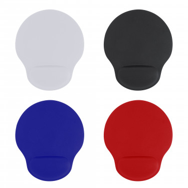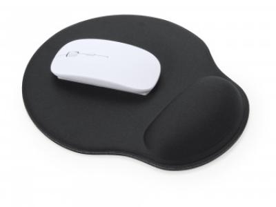 Tappetino mouse ergonomico, superficie in poliestere, poggia polsi imbottito, base antiscivolo.