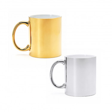 Tazza in ceramica con finitura lucida, effetto metallizzato.