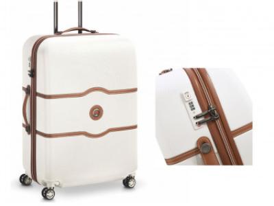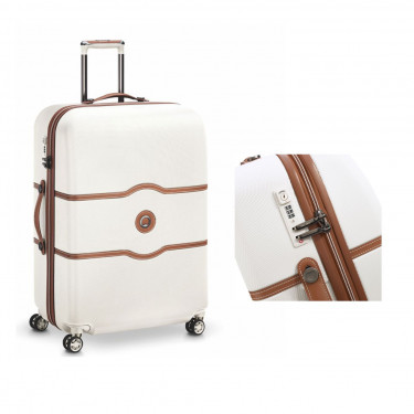 Valigia trolley in policarbonato vergine e inserti in pelle. Facile da trasportare dotati di 4 ruote. Interno foderato con tasche chiuse da zip con cursori in pelle. Completo di gruccia. Pochette porta scarpe. Corredato di chiusura a combinazione TSA. Targhetta di identificazione lato posteriore. Confezione in astuccio. Dimensioni cm.45,5x67x28.