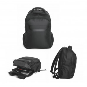 Zaino Portacomputer 15 in poliestere con schienale e spallacci imbottiti, due ampi scomparti frontali imbottiti, tasca imbottita porta tablet, 2 tasche laterali, manico imbottito.