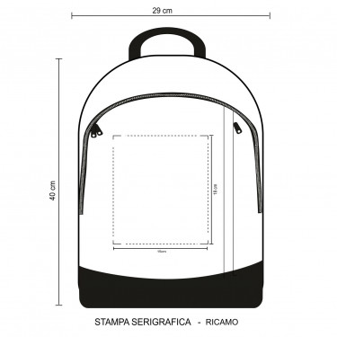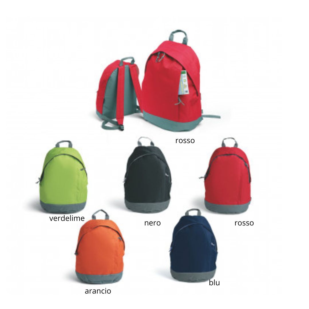 Zaino poliestere 600D.Varie tasche chiuse da zip. Corredato di manico e tracolle regolabili sal-vaspalle. Confezione in polybag.