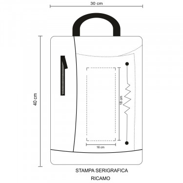 Aria di stampa max cm 16 x 18 con stampa in serigrafia monocolore. Grafica fornita dal cliente o richiedere bozza fornendo il logo in alta qualità o in vettoriale, inoltre indicare colore preferito e colore di stampa.