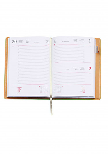 Agenda PU. Vano p/penna. Interno mobile giornaliero (15x21). Stampa 2 colori. Multilingue. Sabato e domenica abbinati. Rubrica telefonica, dati personali, carta bianca.