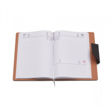 Agenda PU termopvirante. Vari scomparti interni porta card, vano porta penna. Chiusura calamitata Interno mobile giornaliero (15x21). Stampa 2 colori. Multilingue. Sabato e domenica abbinati, rubrica telefonica, carta bianca. Confezione in astuccio. Dimensioni cm.15x21. Colori: nero, rosso, blu. Aria di stampa max cm 8.5 x 5 oppure su lato più grande con stampa cm 8.5 x 18 con stampa in serigrafia monocolore. Grafica fornita dal cliente o richiedere bozza fornendo il logo in alta qualità o in vettoriale, inoltre indicare colore preferito articolo e colore di stampa. il prezzo indicato e per un pezzo compreso stampa con un minimo di ordine di 1 cartone contenente 30 pezzi per colore, per ordine multipli viene applicato uno sconto.