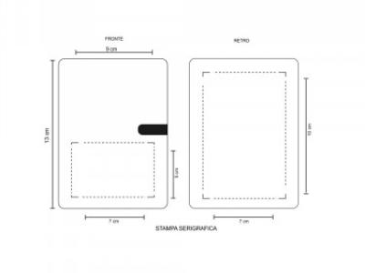 Aria di stampa max cm 7 x 5 oppure su lato più grande con stampa cm 7 x 10 con stampa in serigrafia monocolore. Grafica fornita dal cliente o richiedere bozza fornendo il logo in alta qualità o in vettoriale, inoltre indicare colore preferito articolo e colore di stampa.