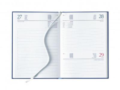 Agenda giornaliera in matra. Interno stampa 2 colori. Multilingue. Sabato e domenica abbinati, rubrica telefonica, cartina geografica, festività nel mondo. Colore unico. . Dimensioni cm 15x21.