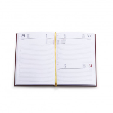 Agenda giornaliera in matra. Interno stampa 2 colori. Multilingue. Sabato e domenica abbinati, rubrica telefonica, cartina geografica.