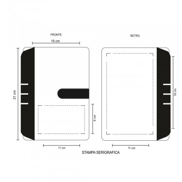Aria di stampa max cm 11 x 6 oppure su lato più grande con stampa cm 11 x 18 con stampa in serigrafia monocolore. Grafica fornita dal cliente o richiedere bozza fornendo il logo in alta qualità o in vettoriale, inoltre indicare colore preferito articolo e colore di stampa.