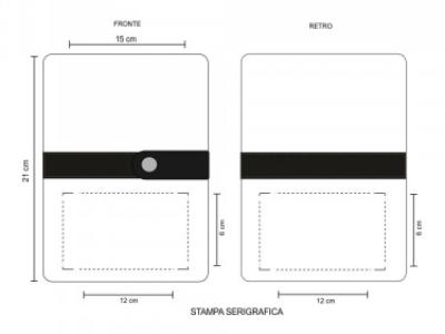 Aria di stampa max cm 12 x 6 oppure su lato più grande con stampa cm 12 x 6 con stampa in serigrafia monocolore. Grafica fornita dal cliente o richiedere bozza fornendo il logo in alta qualità o in vettoriale, inoltre indicare colore preferito articolo e colore di stampa.