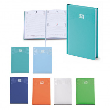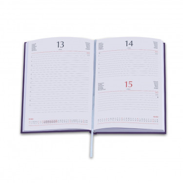 Agenda giornaliera in matra. Interno stampa 2 colori. Multilingue. Sabato e domenica abbinati, rubrica telefonica, cartina geografica. Dimensioni cm 11x17.