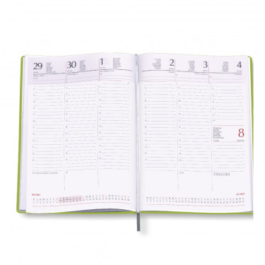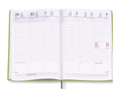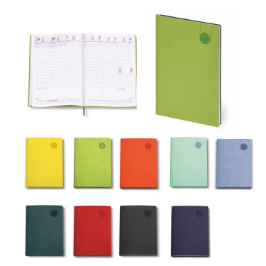 Agenda settimanale “Tavecchi”. Materiale: printflex termovirante. Interno stampa 2 colori. Multilingue Carta bianca. Cartina geografica, rubrica telefonica.