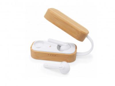 Auricolari wireless Bluetooth 5.0 con custodia di ricarica in bamboo, pulsante multifunzione integrato, funzione vivavoce, batteria ricaricabile wireless, cavo incluso..