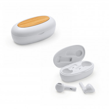 Cuffie Bluetooth 5.0 con custodia di ricarica. Realizzato in ABS riciclato e bamboo.