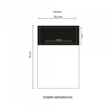 Aria di stampa per questo articolo e in serigrafia con stampa solo fronte cm 9.5x4, la stampa e in monocolore ( se si desidera la stampa a più colori farne richiesta per eventuale possibilità e per il prezzo).