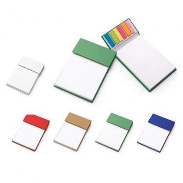 Blocco notes con post-it colorati. Testata colorata. Confezione in astuccio.