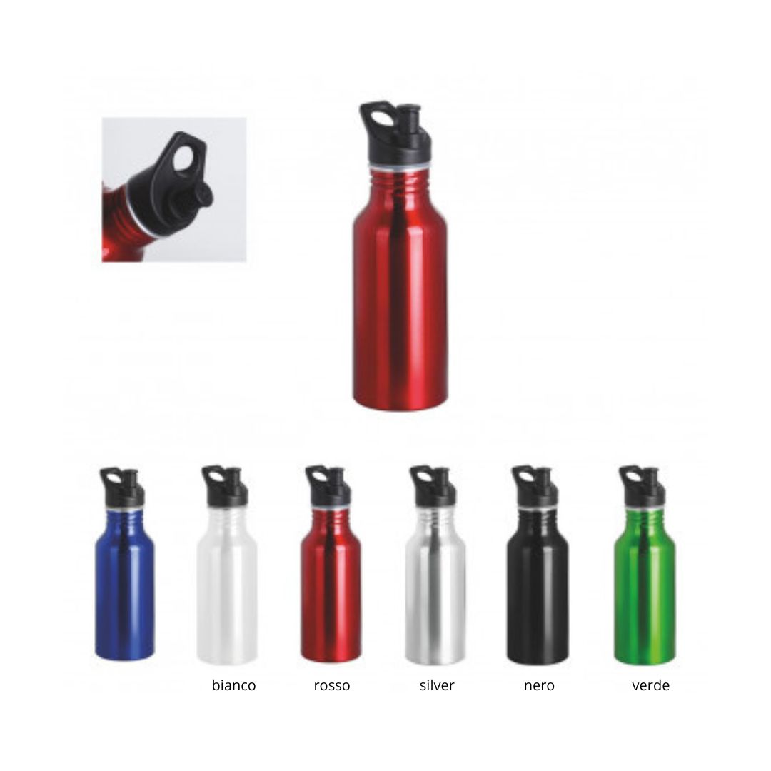 Borraccia 600ml, in alluminio lucido con beccuccio sportivo in ABS.