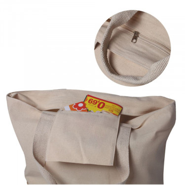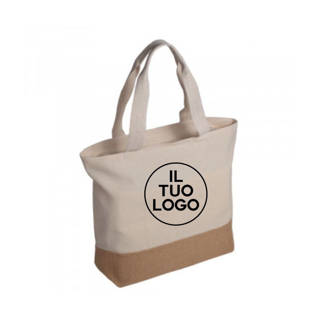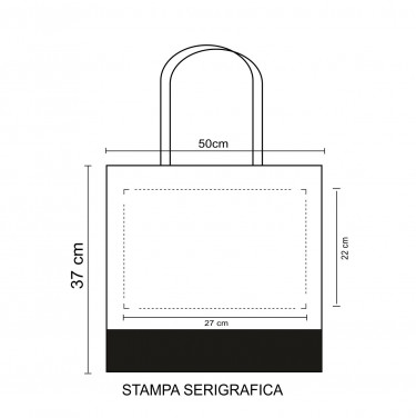 Borsa shopping in canvas 320gr. Chiusura con zip. Tasca interna. Doppio manico (cm 4,2x58), aria di stampa max cm 27 x 22 con stampa in serigrafia monocolore. Se si desidera la stampa su ambo i lati richiedere se e possibile su questo articolo e costi aggiuntivi.