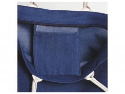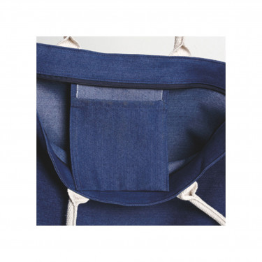 Borsa in tessuto denim 220 GMS, manici lunghi da cm 78 in corda, tasca interna, area di stampa non molto grande con stampa in serigrafia monocolore. Se si desidera la stampa su ambo i lati richiedere se e possibile su questo articolo e costi aggiuntivi.