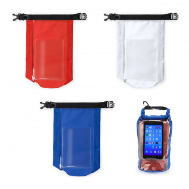Borsa Impermeabile in Nylon Ripstop, Tasca per il cellulare, sistema di chiusura a tenuta stagna con clic e moschettone. Capacità 2,5L.