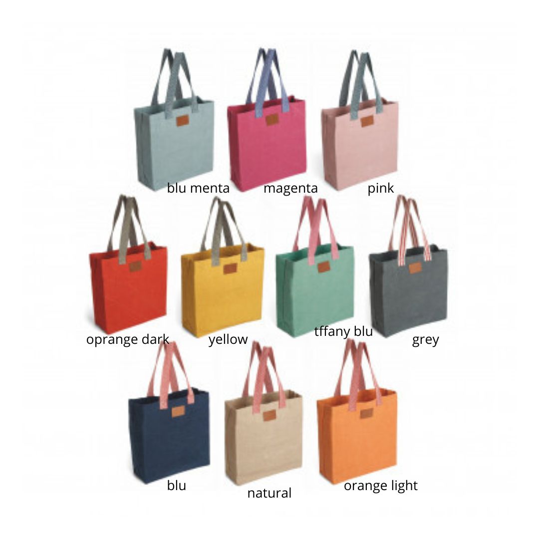 Borsa in soft juta e cotone, tasca interna, manici in corda cm 4x70, aria di stampa max cm 20 x 15 con stampa in serigrafia monocolore. Se si desidera la stampa su ambo i lati richiedere se e possibile su questo articolo e costi aggiuntivi. Grafica fornita dal cliente o richiedere bozza fornendo il logo in alta qualità o in vettoriale, inoltre indicare colore preferito e colore di stampa. Dimensione shopper cm 40x42x15 cm colori :orange dark, magenta, pink, blu menta, yellow, tiffany blu, gray, blu, natural,orange light. Il prezzo indicato e per un pezzo compreso stampa, con un minimo di ordine di 1 collo da 10 pezzi, per ordine multipli viene applicato uno sconto.