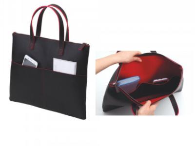 Borsa porta documenti in similpelle. 2 tasche interne. 2 tasche esterne. Doppio manico (cm. 2x50). Profili e interno a contrasto. Chiusura con zip.