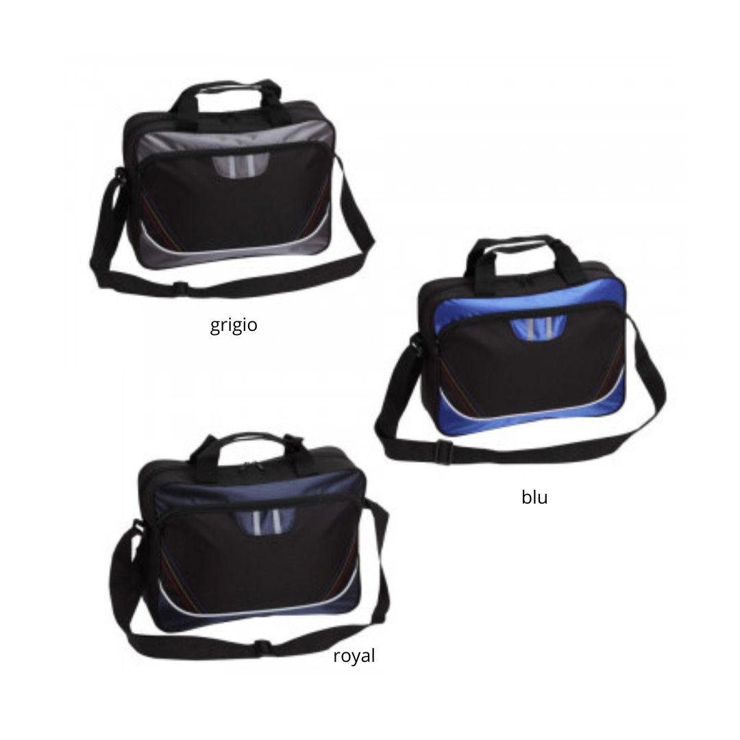 Borsa professionale poliestere 600D. Tasca frontale c/zip. Tracolla regolabile e removibile. Doppio manico. Confezione in polybag.