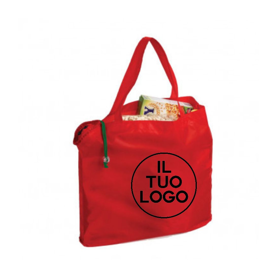 Borsa shopping “Rosa” in poliestere. Richiudibile su se stessa con laccetto. Moschettone in pla-stica. Confezione in polybag, aria di stampa max cm 28.5 x 21 con stampa in serigrafia monocolore. Se si desidera la stampa su ambo i lati richiedere se e possibile su questo articolo e costi aggiuntivi.