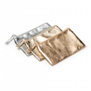 Borsetta in PU lucido, con cerniera e tiretto abbinati. Dimensioni: cm 12x8,5.