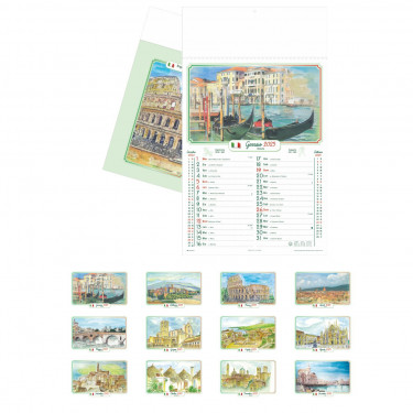 Calendario “Citta’ d’Italia”. Trimestrale 12 fogli + copertina. Carta patinata.
