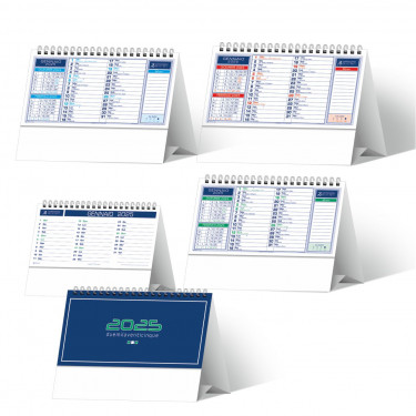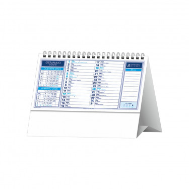 Calendario da tavolo “Basic”. Trimestrale 12 fogli. Cartoncino bianco. Carta usomano.