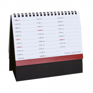 Calendario Desk”. Mensile 13 fogli fustellati . Cartoncino nero. Carta patinata.