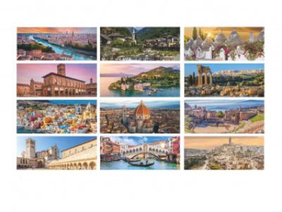 Calendario “Paesaggi e Città”. Trimestrale 12 fogli cartoncino bianco. Carta patinata.