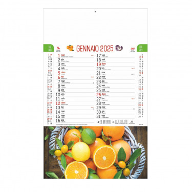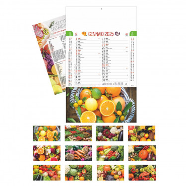 Calendario “Frutta e Ortaggi”. Mensile 12 fogli + retro. Testata pressofusa carta patinata.
