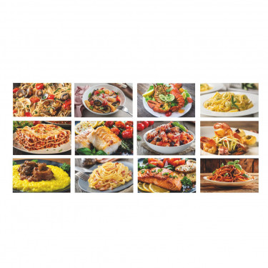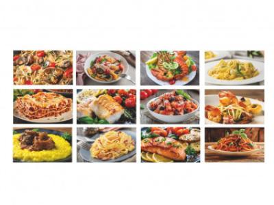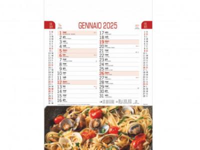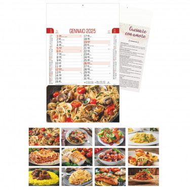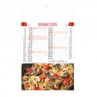 Calendario “Gastronomia.”. Trimestrale 12 fogli + retro. Testata pressofusa carta patinata.