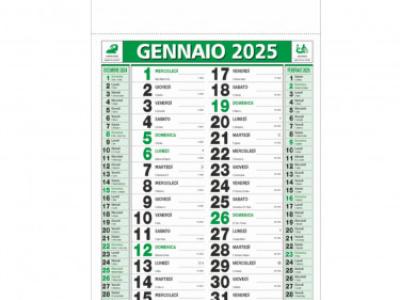 Calendario olandese medio. Trimestrale 12 fogli. Testata pressofusa. Carta patinata.