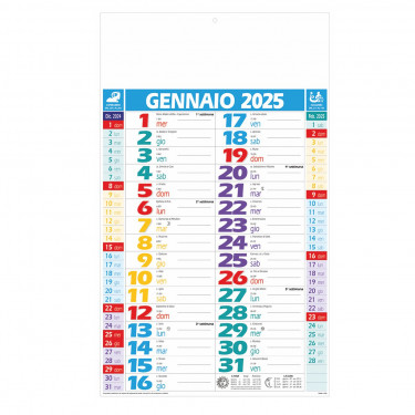 Calendario olandese “Multicolor”. Trimestrale 12 fogli. Carta usomano. Testata pressofusa.