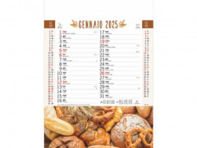Calendario “Pane”. Trimestrale 12 fogli. Carta patinata. Testata pressofusa.