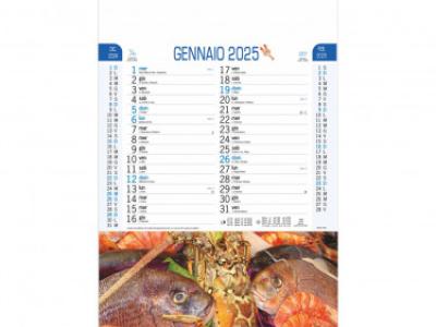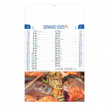 Calendario “Pesce”. Trimestrale 12 fogli. Carta patinata Testata pressofusa.