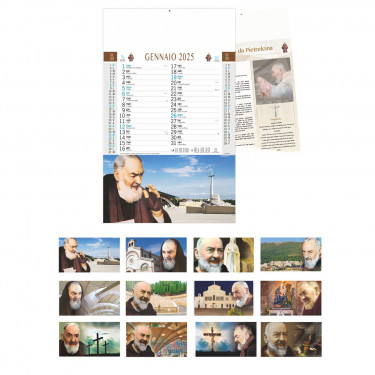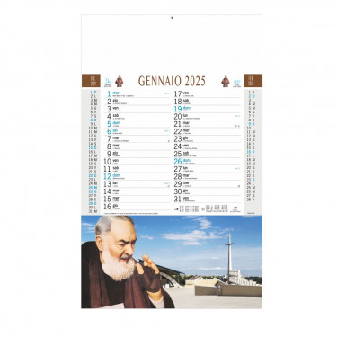 Calendario “San Pio”. Trimestrale 12 fogli + retro. Testata pressofusa carta patinata.