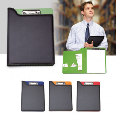 Cartella congresso 2 ante con pressino, in similpelle. Interno colorato. Varie tasche interne porta documenti, porta card, porta penna.