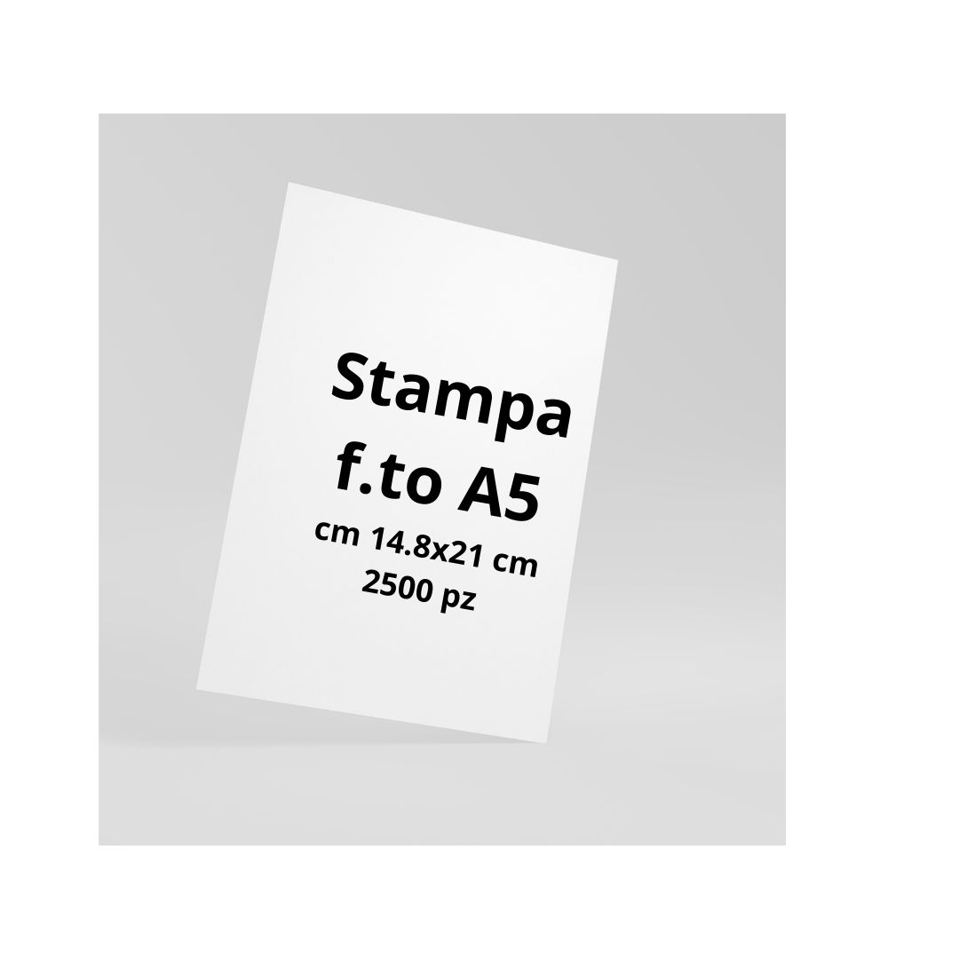 Stampa volantino f.to A5 a colori su carta patinata da 100 gr con grafica in alta definizione fornita dal cliente, in caso il clienti non è fornito della grafica dovrà concordare i costi per la grafica, prezzo riportato per 2500 pezzi, per stampe maggiori richiedere preventivo per applicare sconto. Possibilità di spedire il prodotto in tutta Italia, e possibilità di distribuzione ed effettuare volantinaggio dello stesso richiedendo il preventivo indicando zone da coprire.