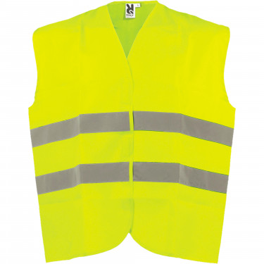 Gilet alta visibilità conforme EN471. Poliestere100% fluoroscente. Misura unica. Dimensioni: 69x74h cm.