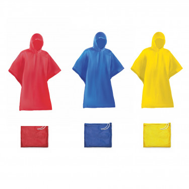 K-way impermeabile con cappuccio e apertura per le braccia, finitura termosaldata e chiusura laterale con ganci.