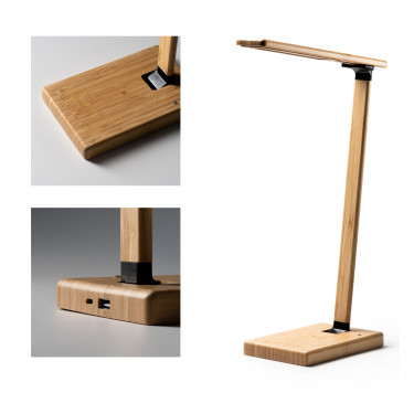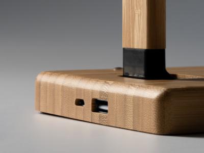 Lampada da tavolo pieghevole in bamboo con caricatore wireless integrato da 10W, 25 luci LED con 3 modalità di illuminazione e intensità, timer luce da 1 a 2 ore.