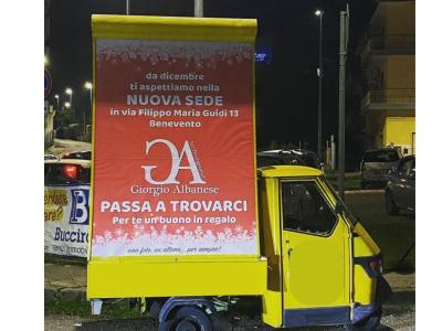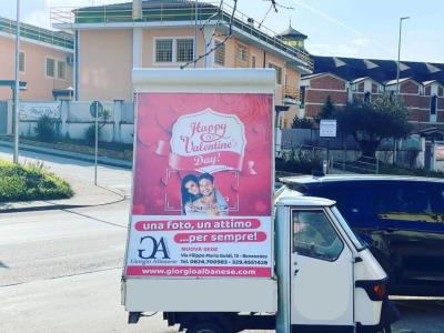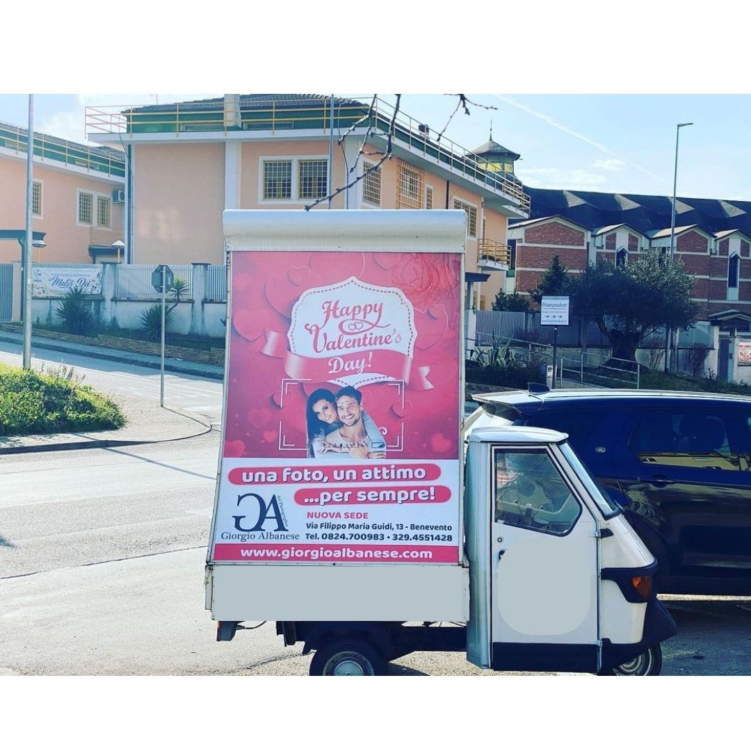 Noleggio Apecar vela statica (parco Apecar vela di diverse unità), con spostamenti ogni 24/48 H in zone concordati con il cliente rispettando sempre il codice della strada, in caso di scelta dei post dove e previsto il pagamento della sosta questa va calcolata a parte oppure il cliente può pagarla comunicandoci ora inizio e fine sosta. Il noleggio dell'Apecar vela può essere da un giorno e per il tempo che il cliente necessita il noleggio. Il noleggio dell'Apecar vela vanno calcolate le due stampe e affissioni che sono spese iniziali, in caso che le stampe le fornisce il cliente vanno pagate come spese extra solo l'affissione, viene riportato solo il noleggio giornaliero come costo, nella richiesta di preventivo indicare i gg di noleggio che richiede in modo che nel preventivo che viene inoltrato vi indichiamo spese di noleggio giornaliero da moltiplicare per i giorni richiesti, con eventuale sconto se supera almeno 15 gg, oltre le spese Noleggio camion vela statico, con spostamenti ogni 24/48 H in zone concordati con il cliente rispettando sempre il codice della strada, in caso di scelta dei post dove e previsto il pagamento della sosta questa va calcolata a parte oppure il cliente può pagarla comunicandoci ora inizio e fine sosta. Il noleggio del camion vela può essere da un giorno e per il tempo che il cliente necessario il noleggio. Il noleggio del camion vela vanno calcolate le due stampe e affissioni ch sono spese iniziali, in caso che le stampe le fornisce il cliente vanno pagate come spese extra solo l'affissione, viene riportato solo il noleggio giornaliero come costo, nella richiesta di preventivo indicare i gg di noleggio che richiede in modo che nel preventivo che viene inoltrato vi indichiamo spese di noleggio giornaliero da moltiplicare per i giorni richiesti, con eventuale sconto se supera almeno 5 gg, oltre le spese Noleggio camion vela statico, con spostamenti ogni 24/48 H in zone concordati con il cliente rispettando sempre il codice della strada, in caso di scelta dei post dove e previsto il pagamento della sosta questa va calcolata a parte oppure il cliente può pagarla comunicandoci ora inizio e fine sosta. Il noleggio del camion vela può essere da un giorno e per il tempo che il cliente necessario il noleggio. Il noleggio del camion vela vanno calcolate le due stampe e affissioni ch sono spese iniziali, in caso che le stampe le fornisce il cliente vanno pagate come spese extra solo l'affissione, viene riportato solo il noleggio giornaliero come costo, nella richiesta di preventivo indicare i gg di noleggio che richiede in modo che nel preventivo che viene inoltrato vi indichiamo spese di noleggio giornaliero da moltiplicare per i giorni richiesti, con eventuale sconto se supera almeno 5 gg, oltre le spese iniziali di stampa e affissione. Inoltre il camion vela e datato di illuminazione autogestita. prezzo indicato giornaliero di stampa e affissione.